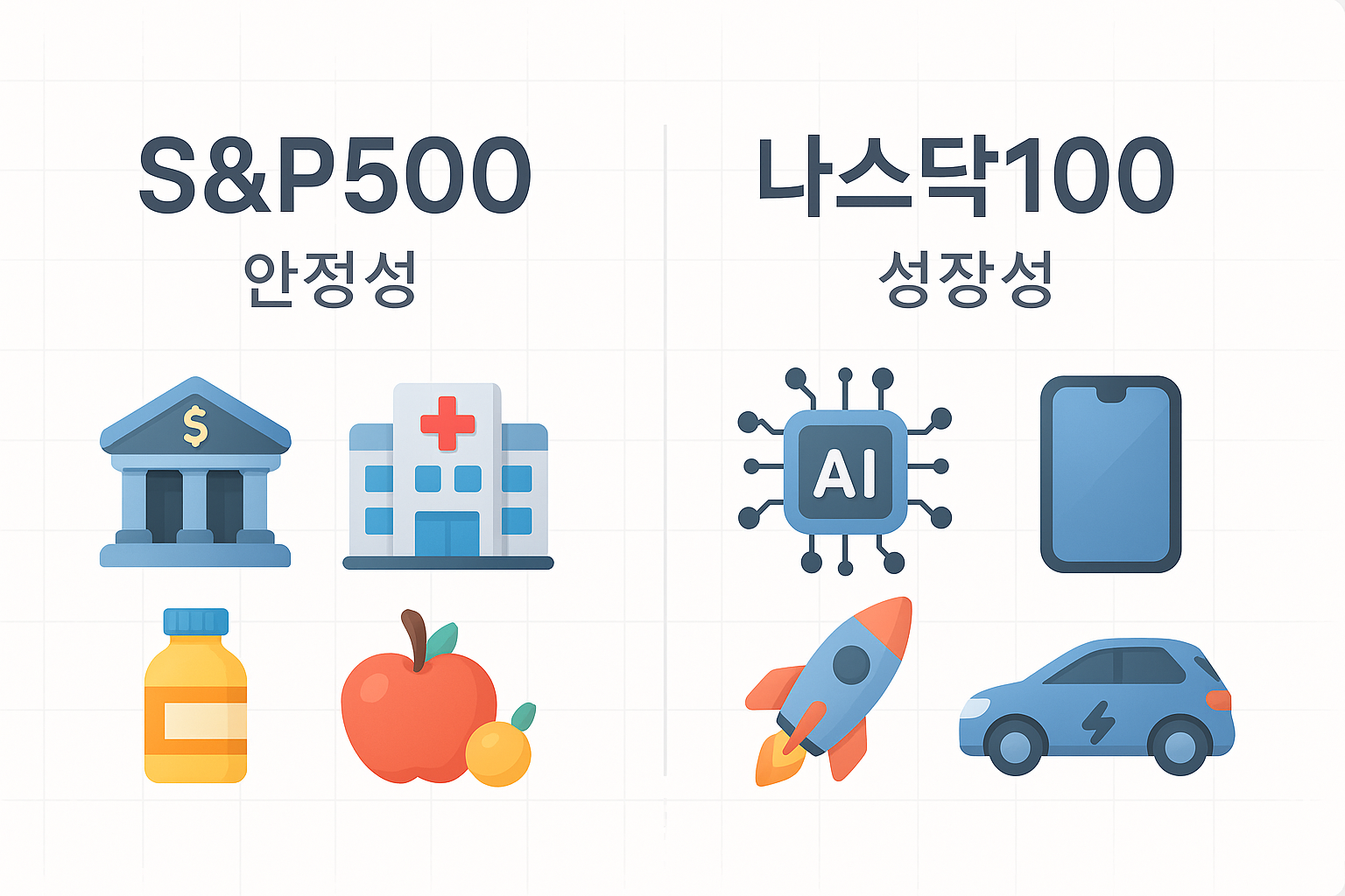 | 나스닥100 | 기술주 중심 / 고수익 고위험 | 성장지향 |